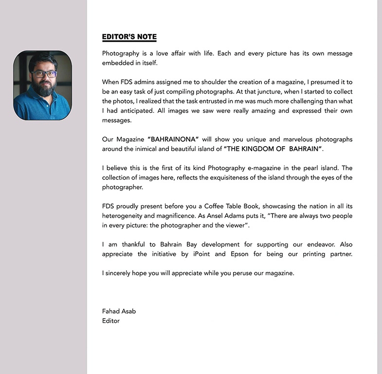 An online e-magazine showcasing the unique talents of the photographers in Bahrain